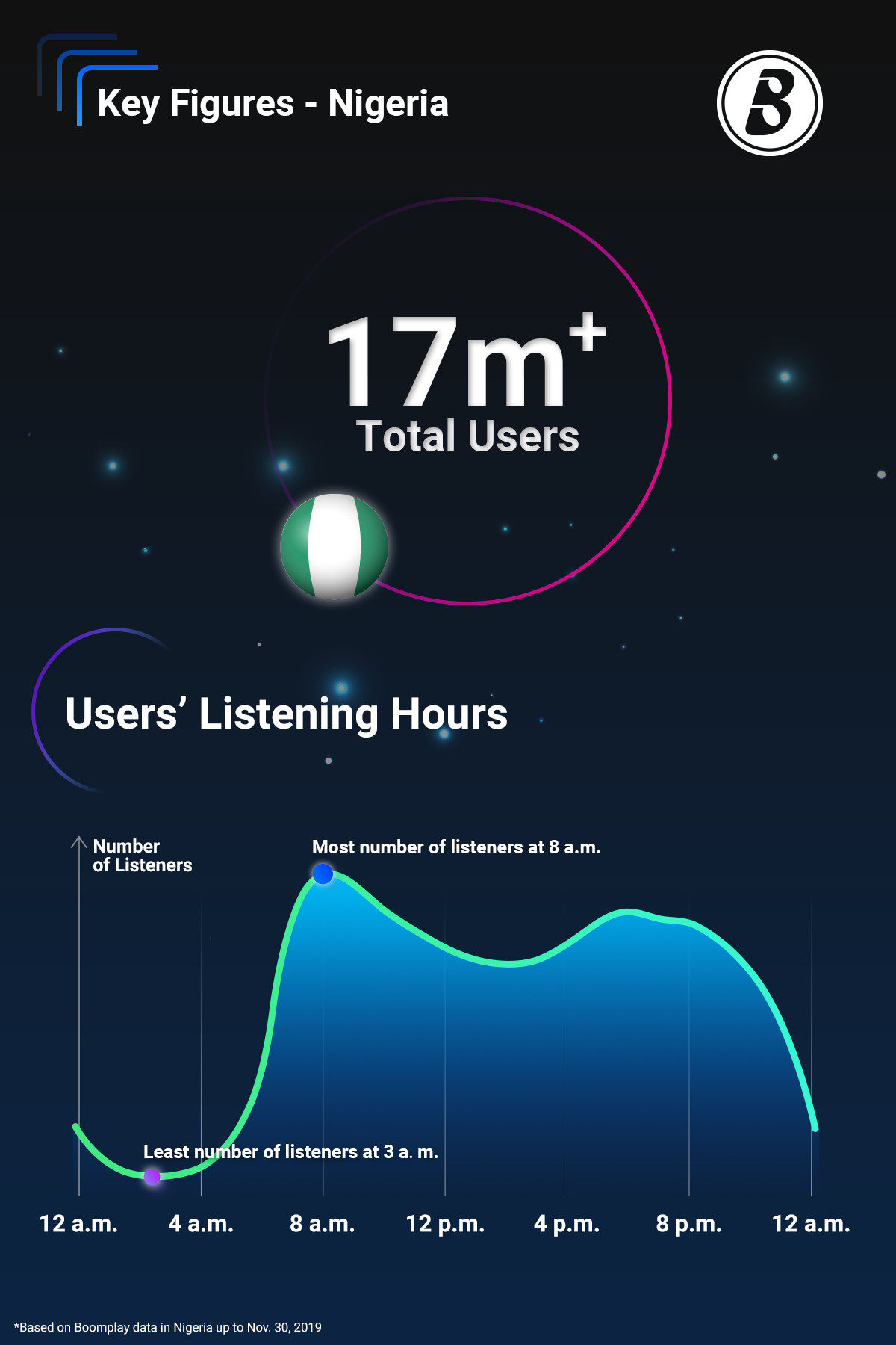 As 2019 draws to a close, it’s a good time to reflect on favorite songs, playlist, artistes and even albums of the year. Based on data, Boomplay, the #1 music streaming service in Africa has put together a report detailing music facts in Nigeria for the year 2019. Boomplay boasts of over 60 million users globally - 17 million of which are from Nigeria and an expansive catalog of over 20M tracks.