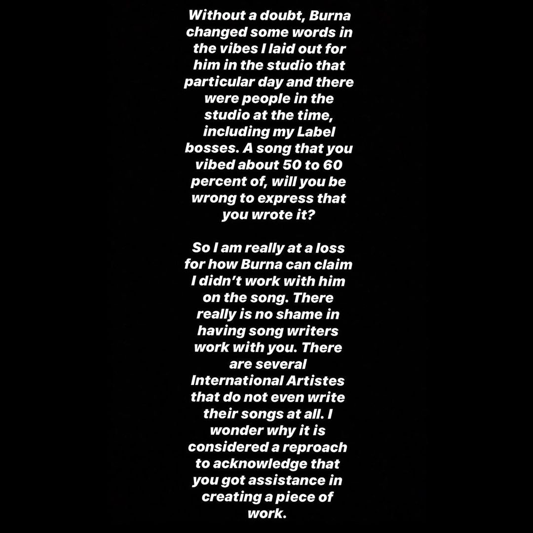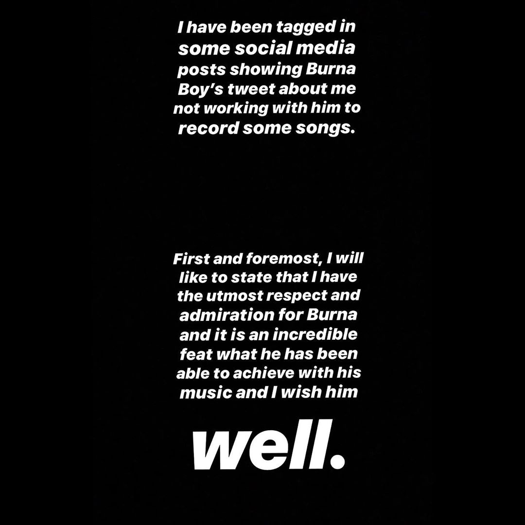 Burna Boy had before this statement, dropped an apology to people who took offence over how he reacted but he never apologized to Ceeza Milli.