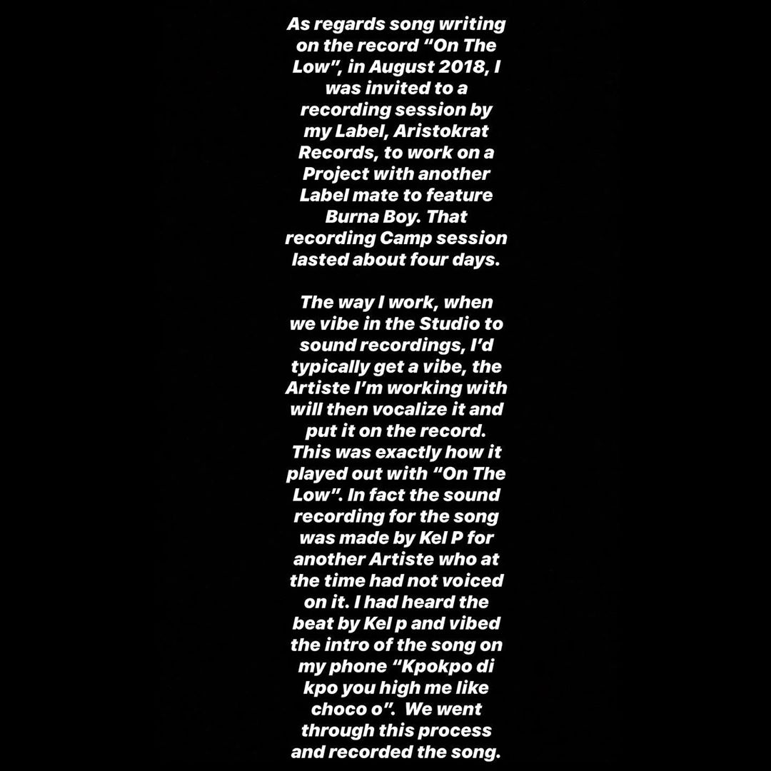 Ceeza Milli statement, Confirming He Wrote 'On The Low'