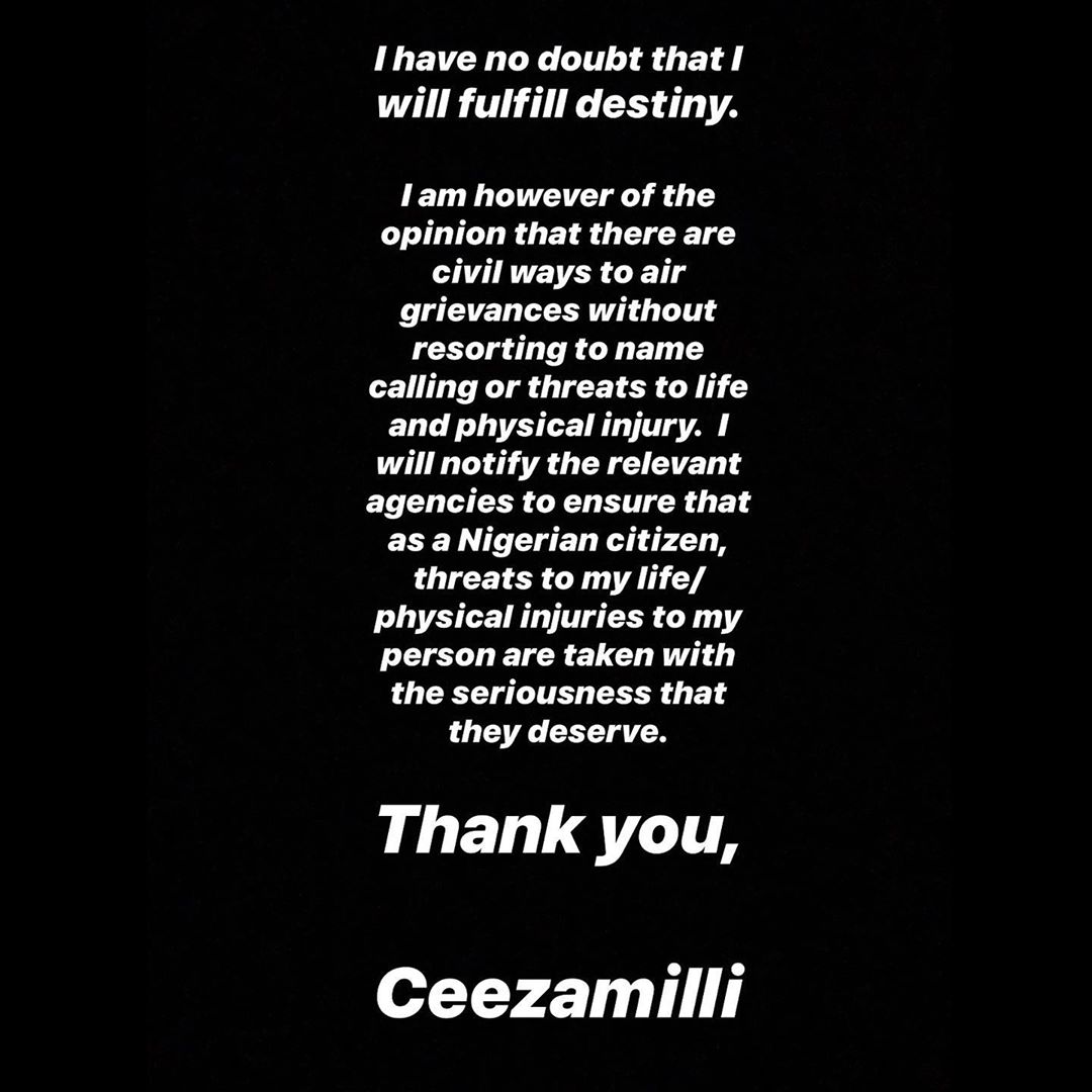 Read Ceeza's Statement below;