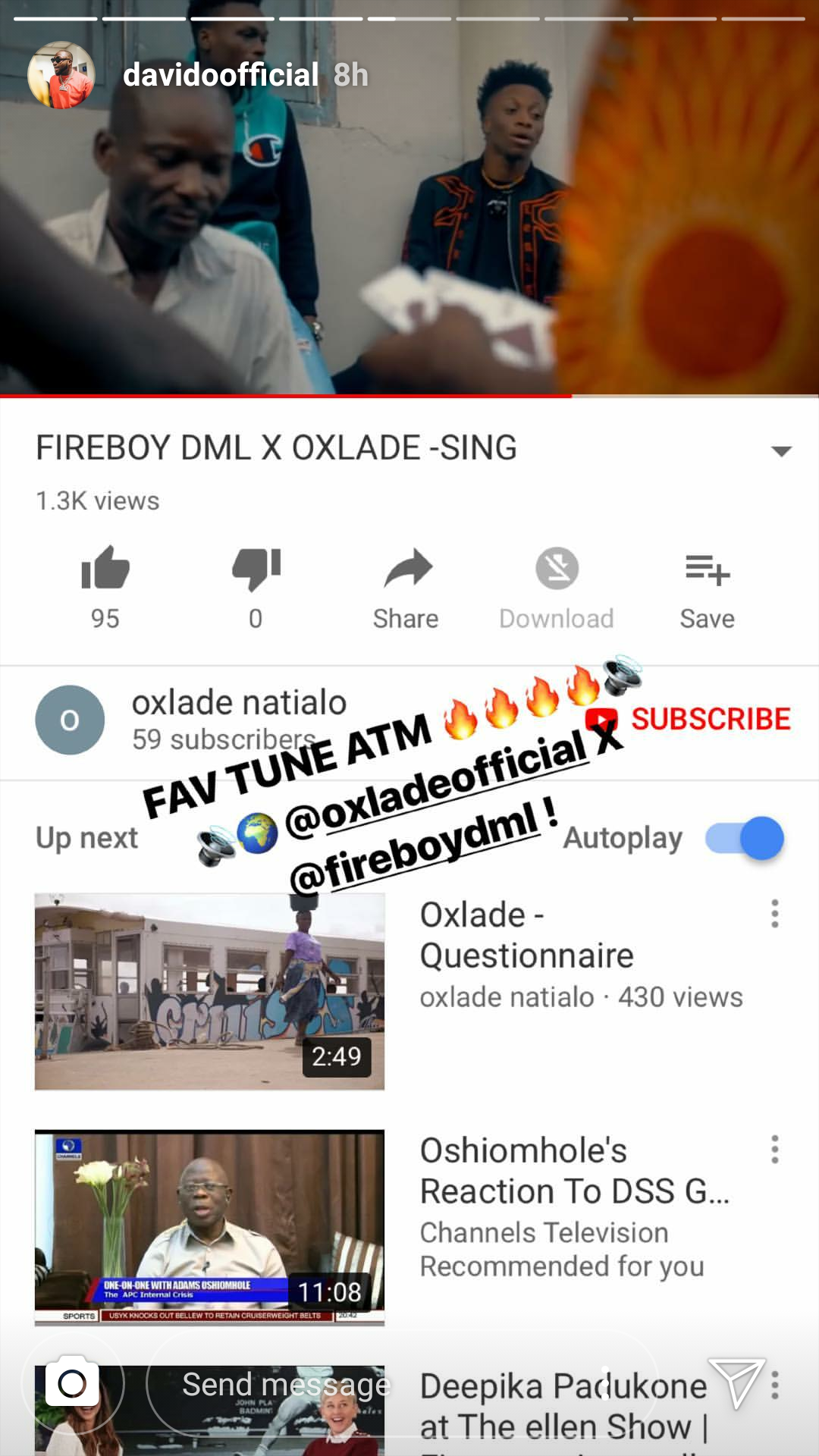 Oxlade, as he is officially known on social media, has been on the music grind for a while now, working and hoping for his big break and it seems fate has finally decided to smile on him after Davido discovered his page and didn't just like his work but also commented.