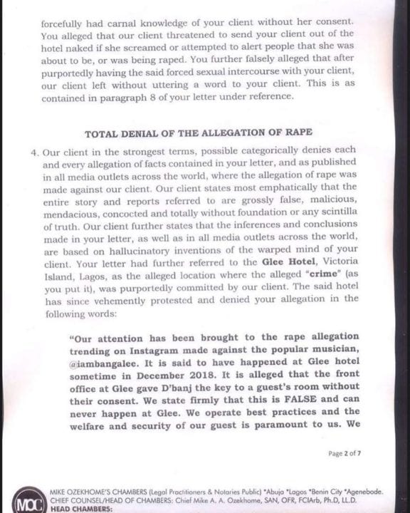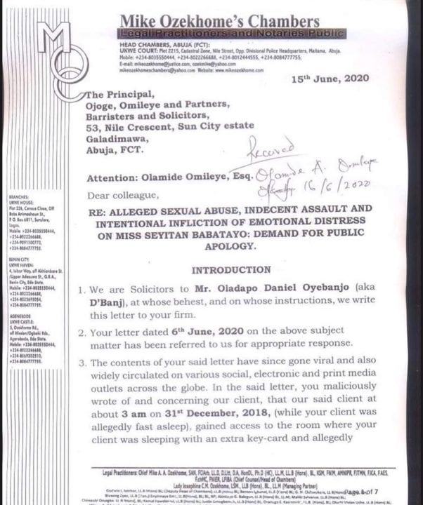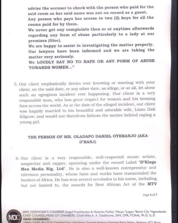 D'banj has officially responded to the rape accusation against him by slamming the accuser, Seyitan Babatayo with a 100 Million lawsuit.