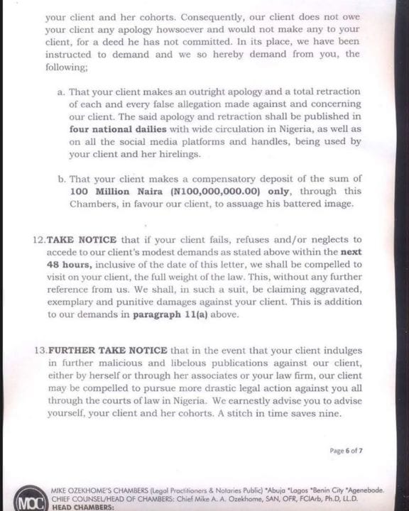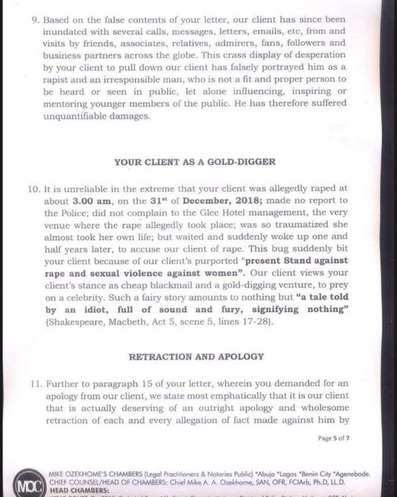 I did not want to dignify the slurs with a response but it appears my silence has empowered my accusers to think I have been scared into the shadows so I would like to state that This Accusation are false and ludicrous and Have been handed over to my Legal Team, while the Nigerian Police is Investigating the Criminal aspect of it.