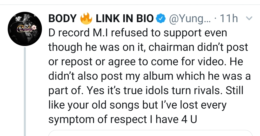 "I've lost every symptom of respect I have for you" - Yung6ix To M.I Abaga