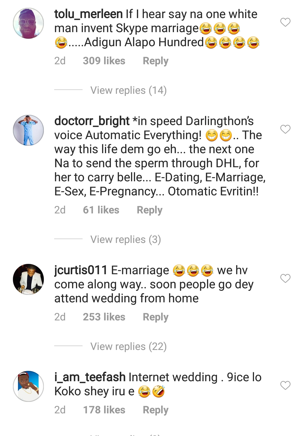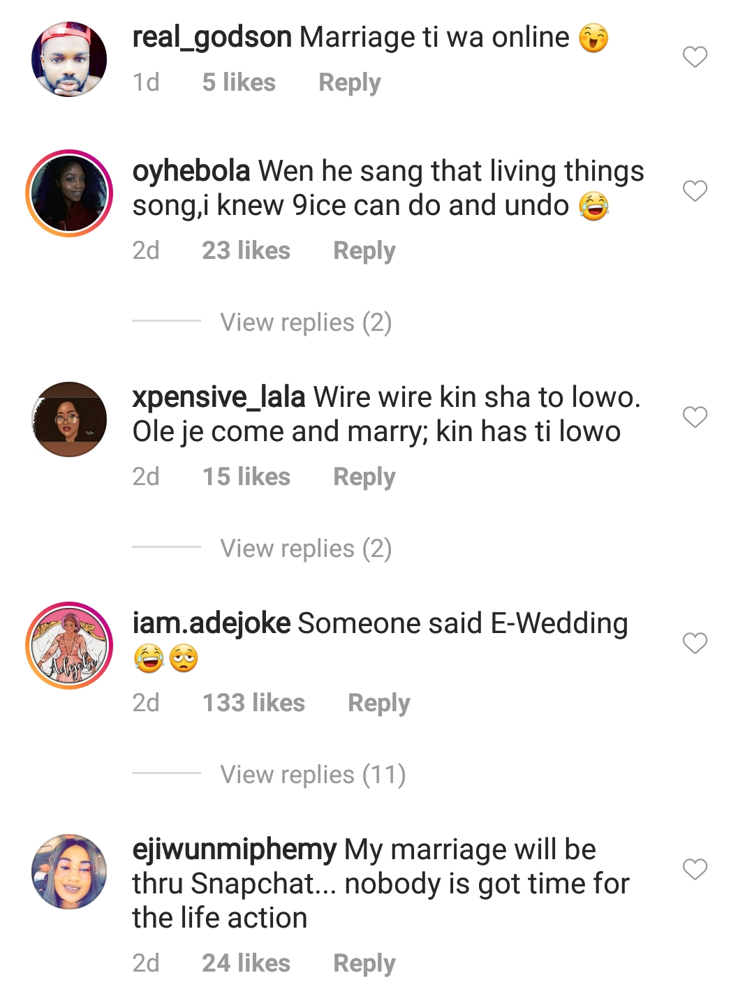 Social media users who came across this video couldn't keep their comments to themselves as they express hilarious concerns. While some wish the marriage well, others express beliefs that the wedding might crash via voice note, but if there is one thing everyone couldn't help but agree on, it's the fact that 9ice has introduced E-Wedding into the Nigerian system. He hasn't said a word since the news broke out and we look forward to his statement, if any will be made at all.
