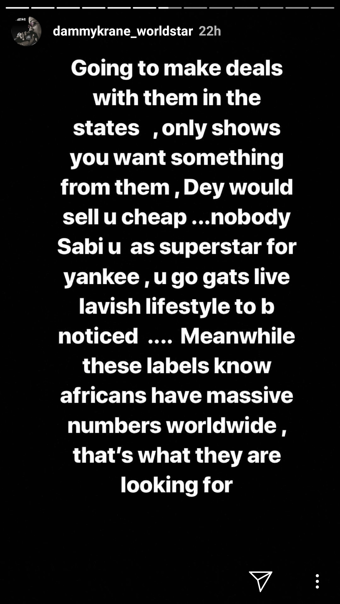 Although Burna Boy did not reveal some of the sad news he said he has heard about the outcome of these international deals, but in his words, "i'm hearing some crazy shit out there. I'm so sad for y'all"