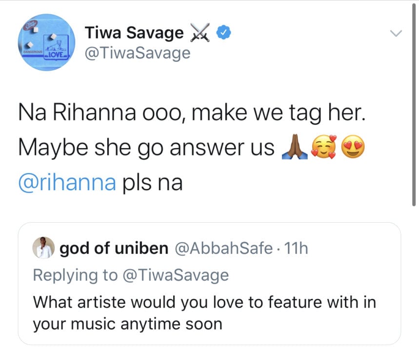 "Na Rihanna ooo, make we tag her. Maybe she go answer us... @Rihanna pls na"