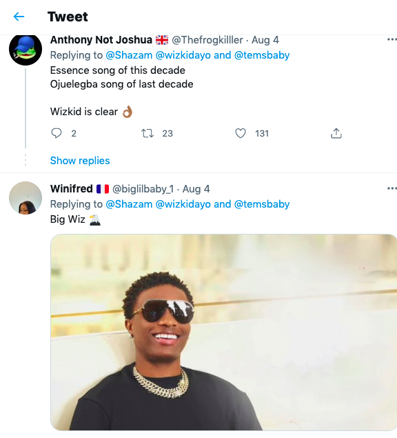 Wizkid and Tems' 'Essence' Reaches One Million Shazam | See Reactions