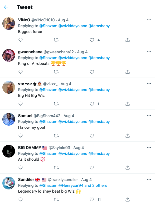 This tweet got celebratory and hilarious responses as some Twitter users expressed their excitement about the spread while a few Twitter users slammed Wizkid and called the achievement a publicity act that was paid for.